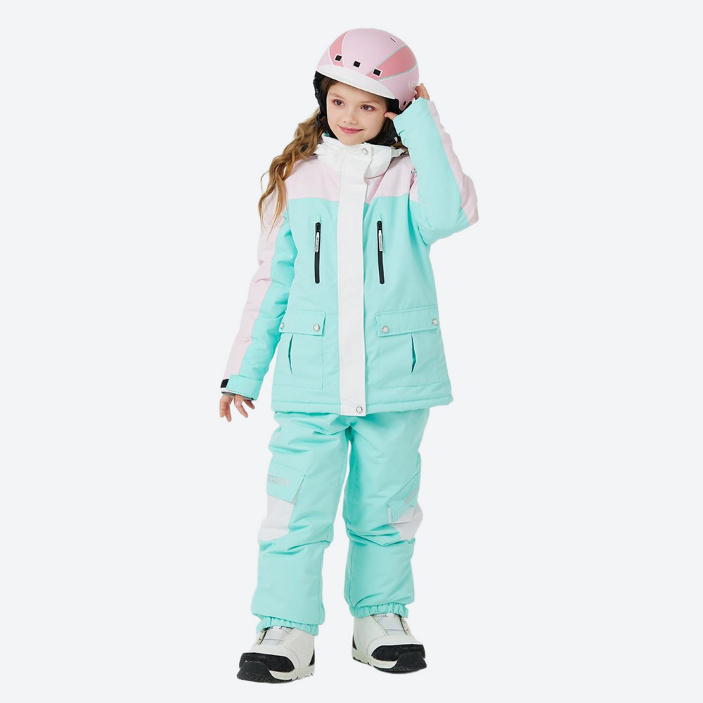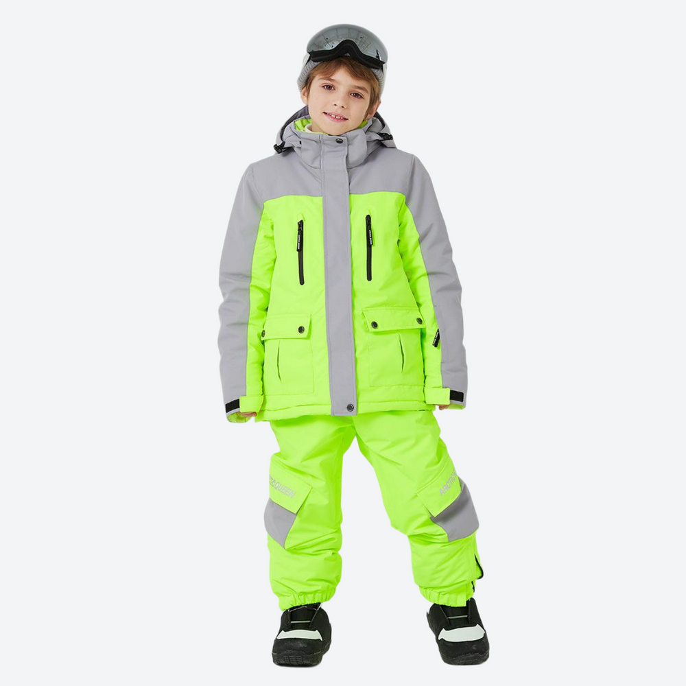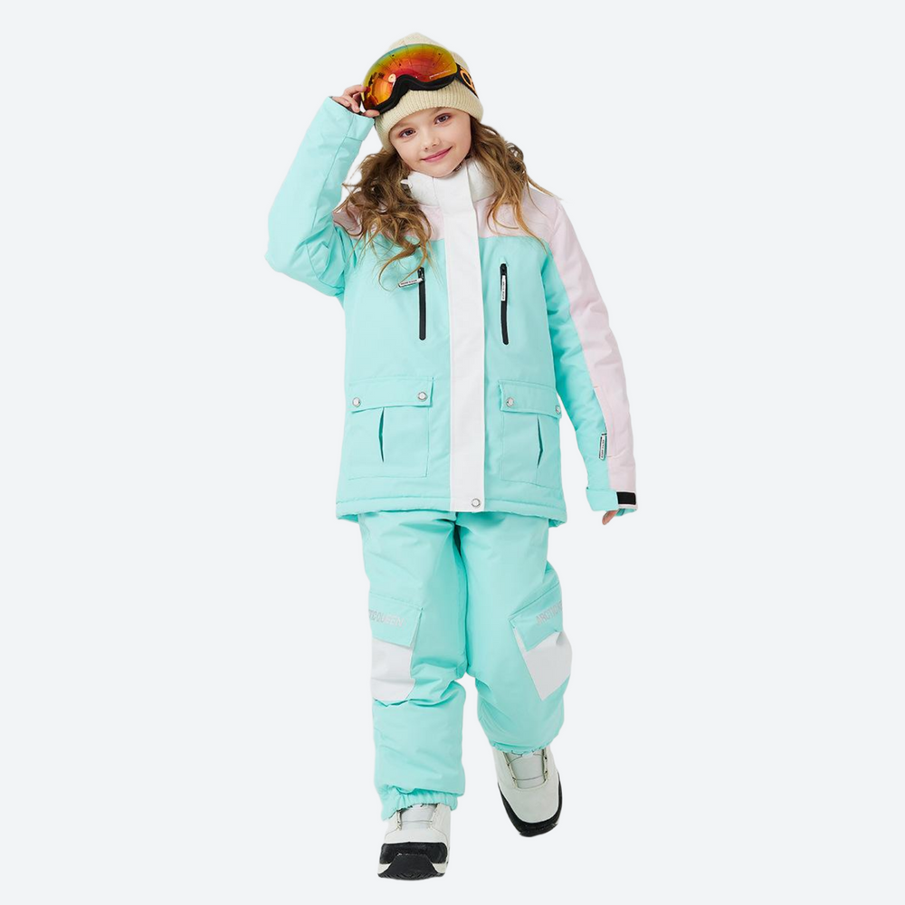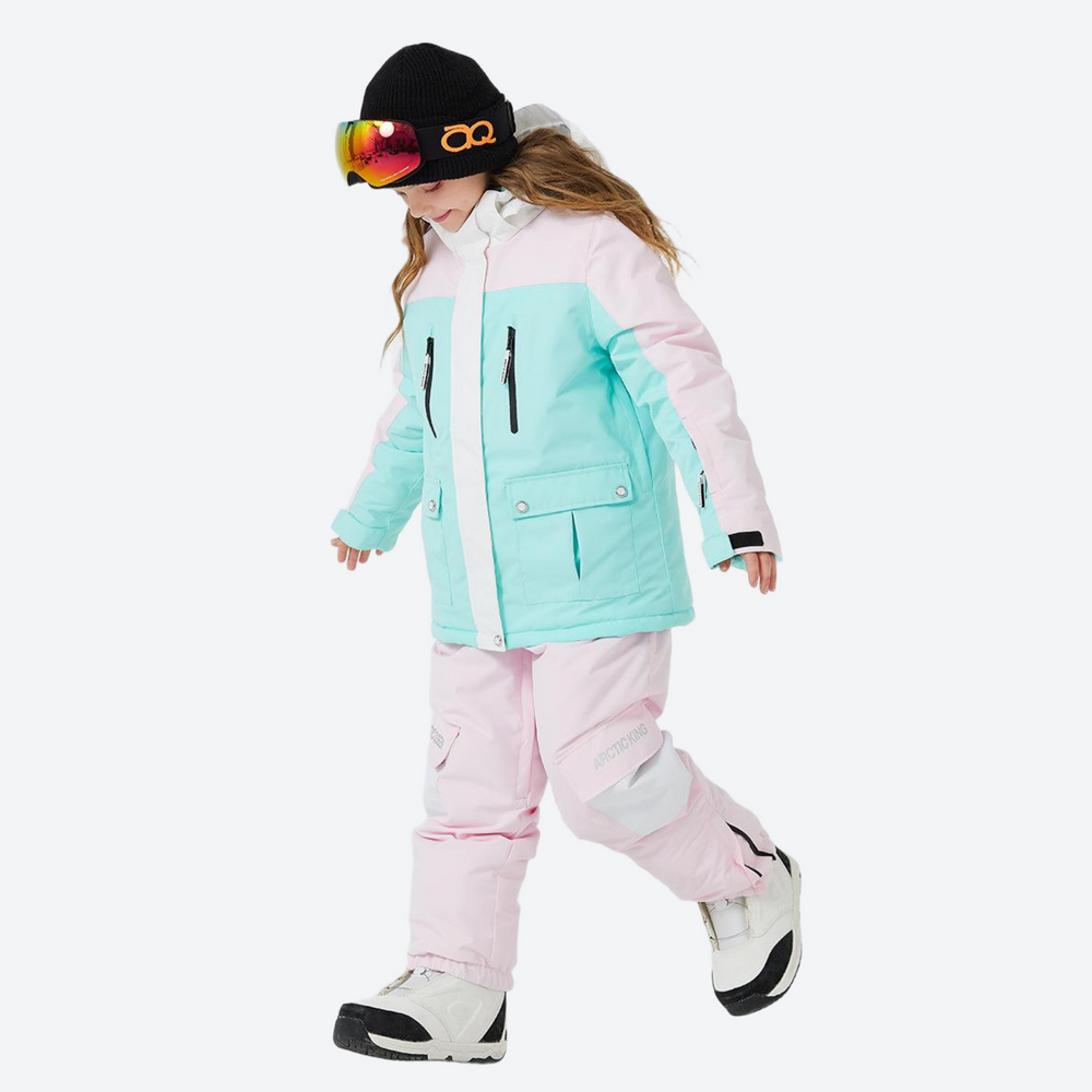 - Adjustable waist and cuffs create a secure fit that moves with your child, ensuring both comfort and snow-out protection.