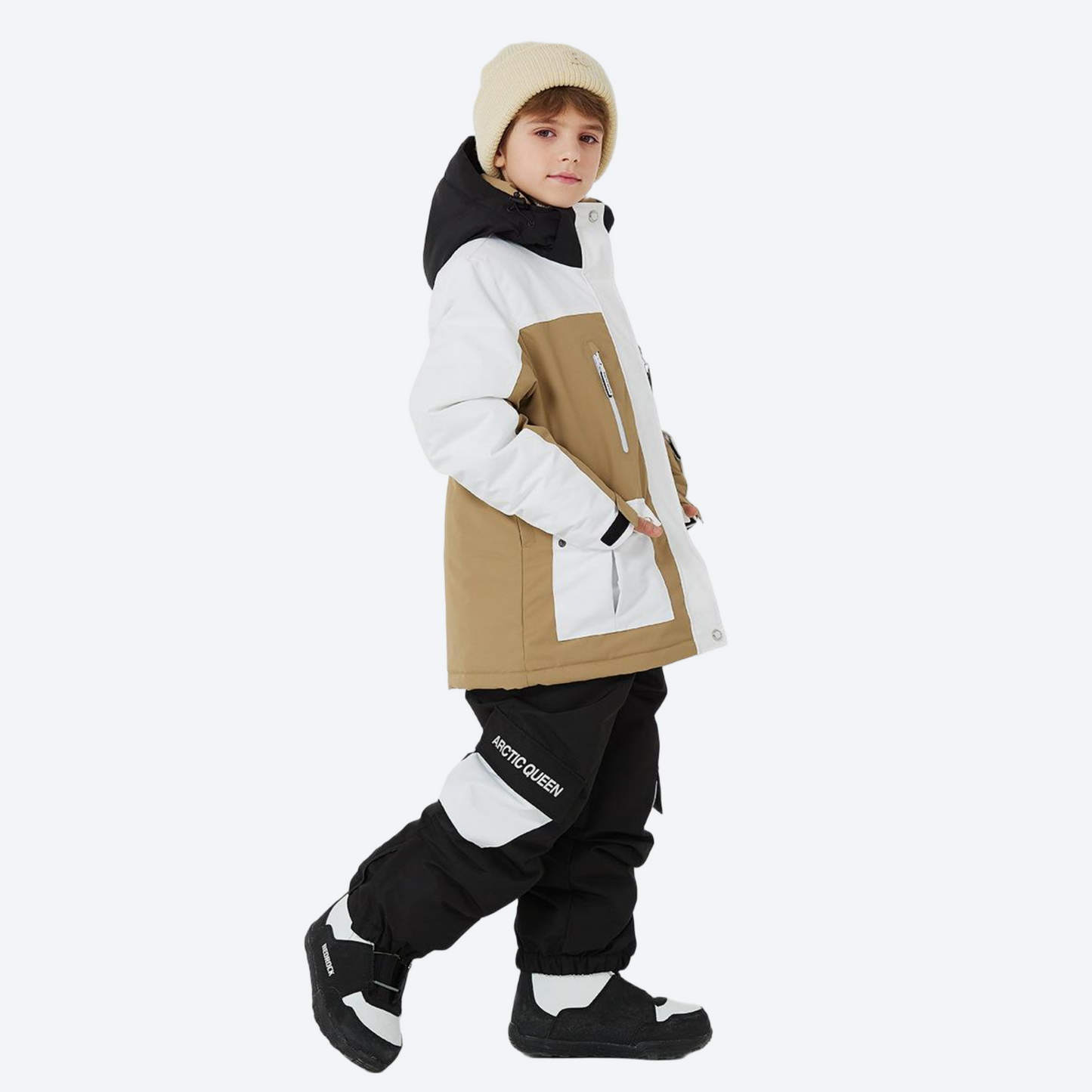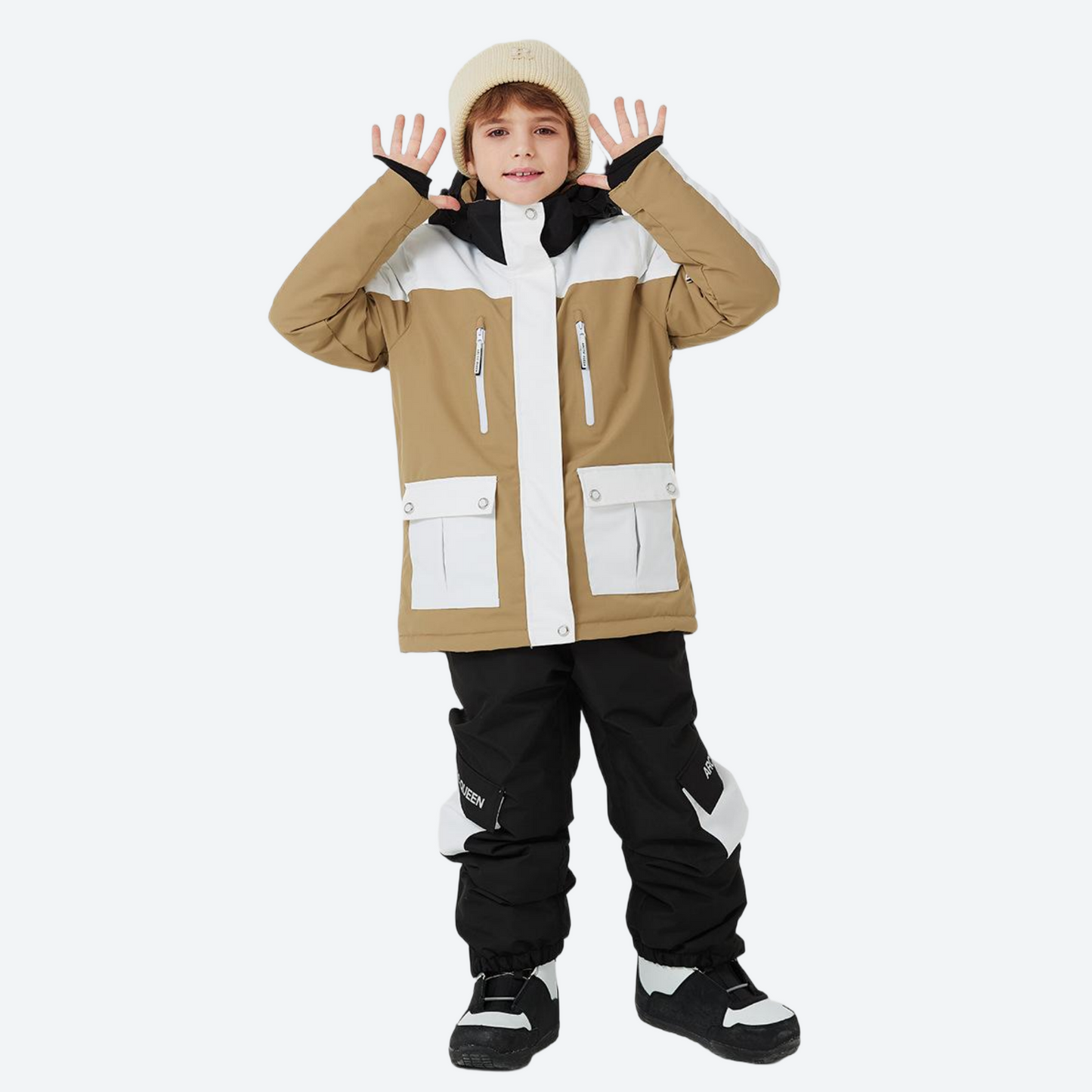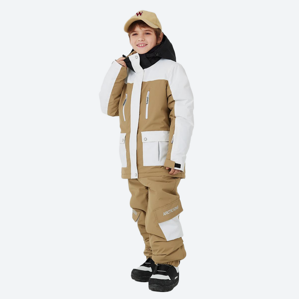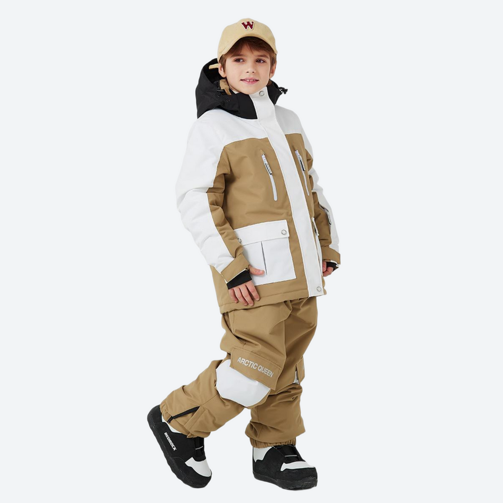 - Adjustable waist and cuffs create a secure fit that moves with your child, ensuring both comfort and snow-out protection.